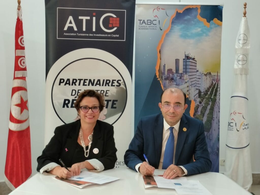 Tunis, le 22 octobre 2025 – Le Tunisia Africa Business Council (TABC) et l’Association Tunisienne des Investisseurs en Capital (ATIC) ont signé un Mémorandum d’Entente visant à renforcer la coopération entre les deux organisations et à promouvoir le financement et le développement des entreprises tunisiennes à l’international et sur le continent africain. Cette convention a été signée par M. Jaziri Anis, Président du TABC, et Mme Selma Ben Hamida Zouaoui, Présidente de l’ATIC, au siège du TABC à Tunis. ![]()