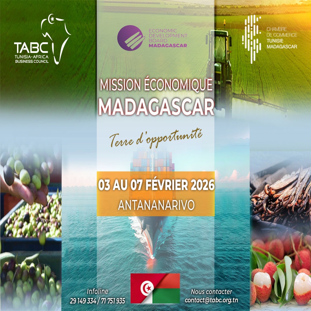 Tunisia Africa Business Council #TABC et la Chambre de Commerce Tunisie Madagascar organisent pour la première fois une mission économique exceptionnelle à Antananarivo, en partenariat avec l’ Economic Development Board of Madagascar